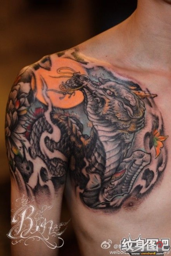 半身盘龙纹身图