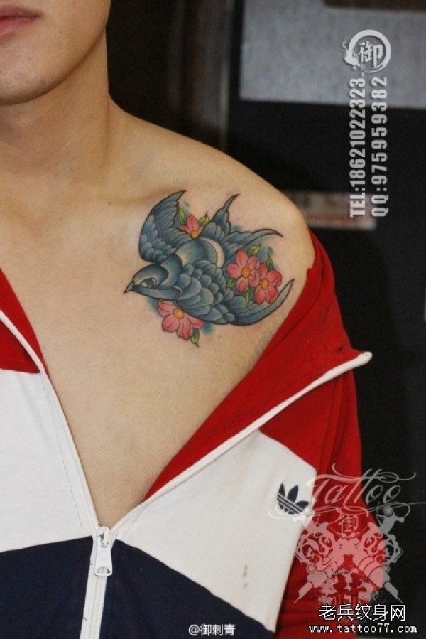 肩部彩色个性燕子纹身图案