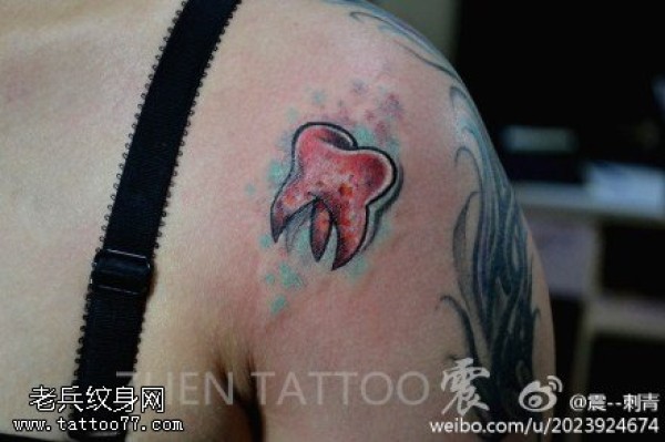 肩部彩色牙齿纹身图案