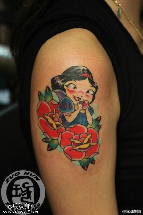 手臂彩色school女郎玫瑰花纹身图片
