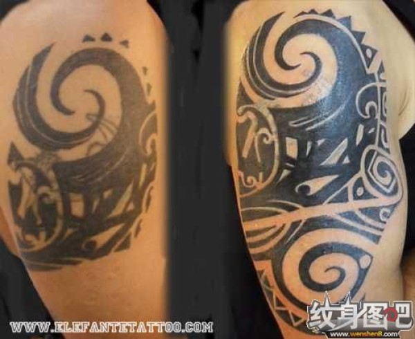 女生肩花纹身_15张女性双肩对称的肩花纹身图案作品图片