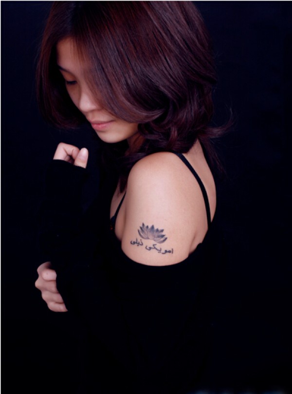漂亮美女大臂唯美好看的莲花文字纹身
