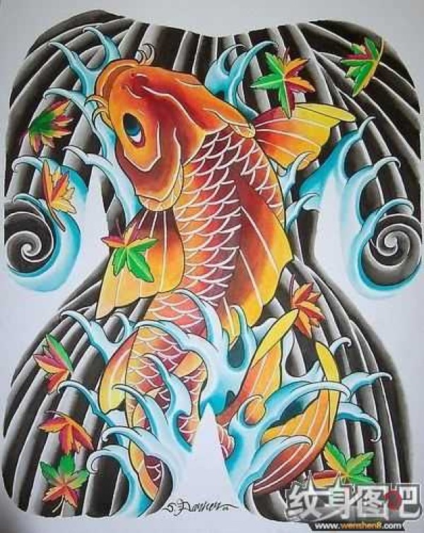 日式金色大鲤鱼纹身手稿