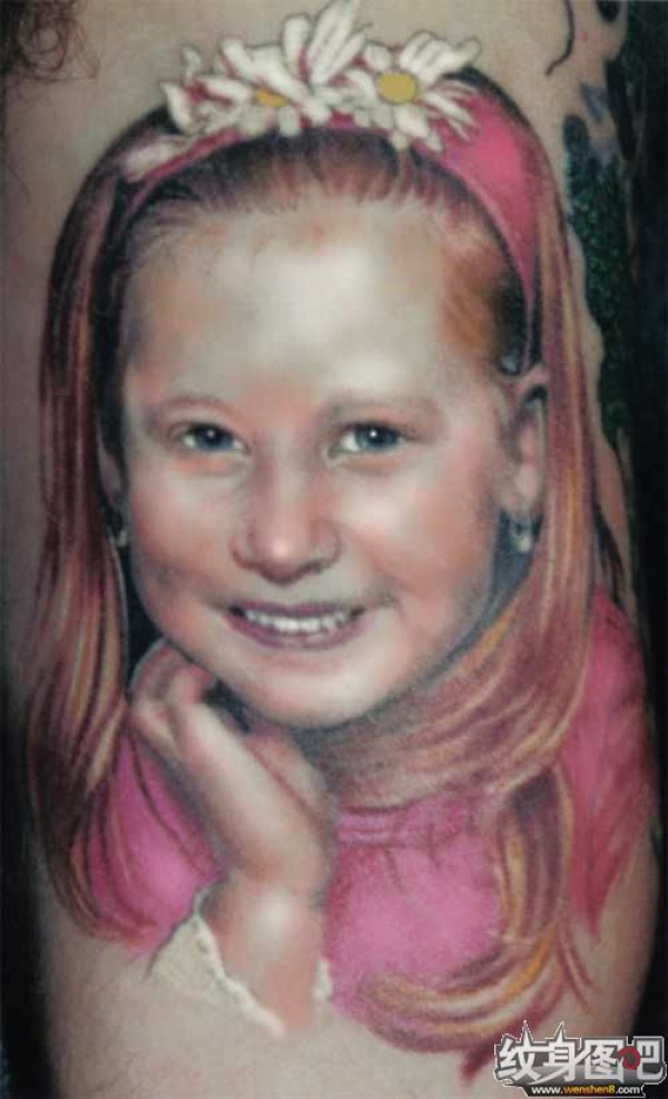 清纯女孩腿上可爱肖像纹身图片_肖像纹身图案大全_纹身图吧