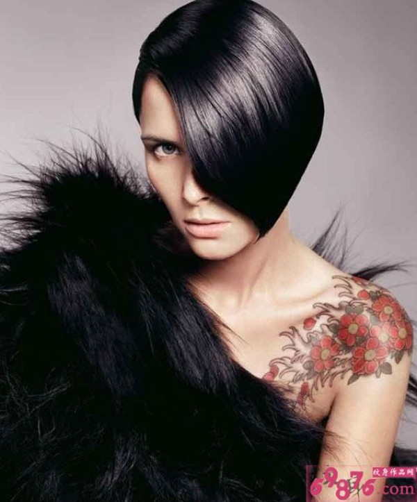 欧美模特香肩花纹身