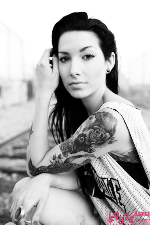 欧美美女花臂时尚纹身