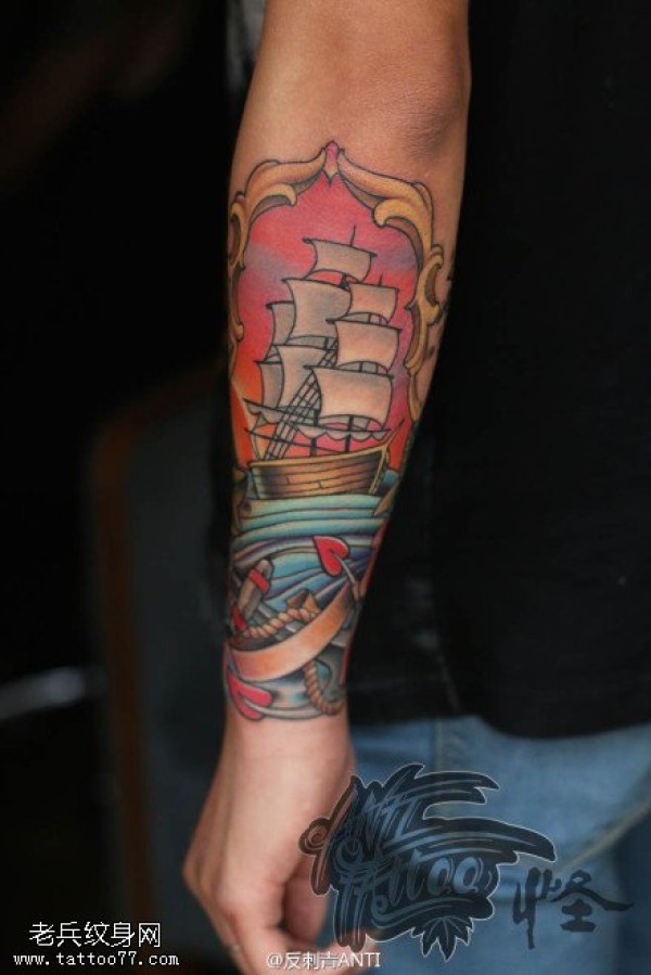 school花臂纹身--一组漂亮的school风格的花臂纹身图案作品