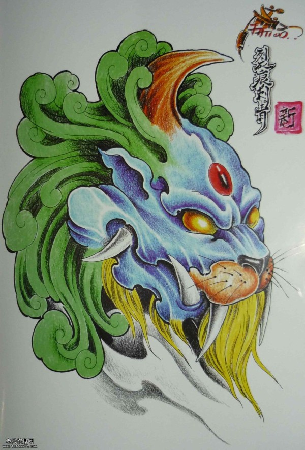 老兵纹身一款个性的唐狮纹身图案