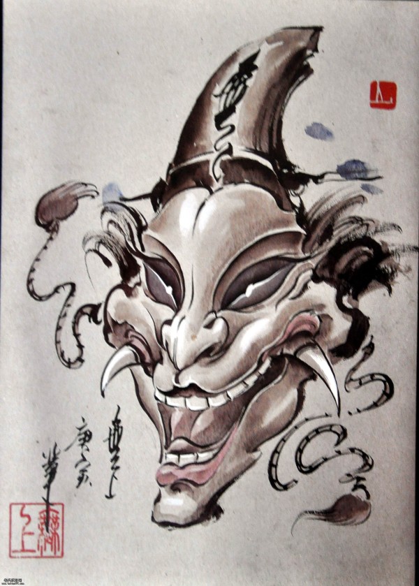 能面万媚纹身手稿_52张日式能剧面具纹身手稿图案素材欣赏