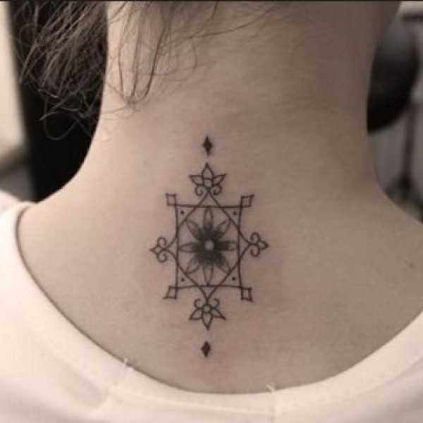 后颈部纹身小图--9张女生脖子后颈处的简约纹身图案