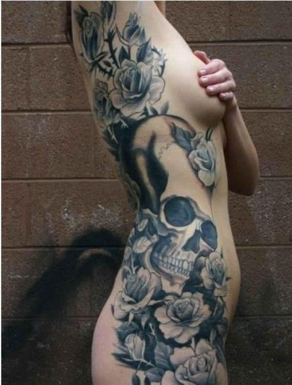 侧腰女骷髅刺青图案图片_骷髅纹身图案大全_纹身图吧