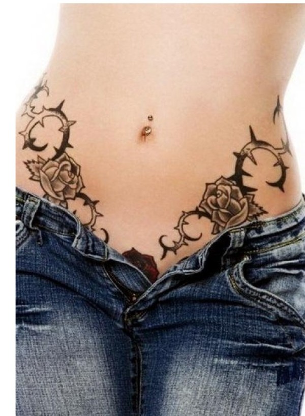 分享一款腰部时尚性感的蝶恋花纹身图案_腰部纹身图案大全_纹身图吧