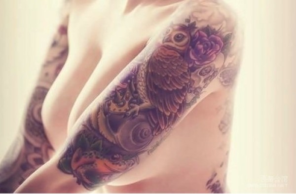 东方美女全裸双臂性感猫头鹰纹身作品图片