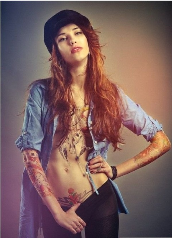 欧美大胸翘臀的一组纹身女郎图片欣赏+性感,女性,美女,欧美