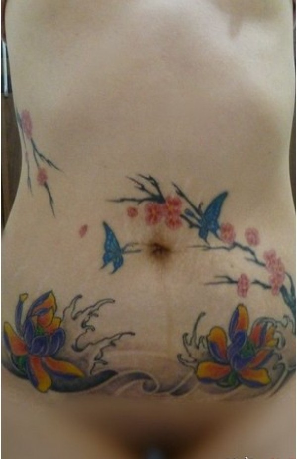 性感美女私处上方的花丛蝴蝶纹身图图片