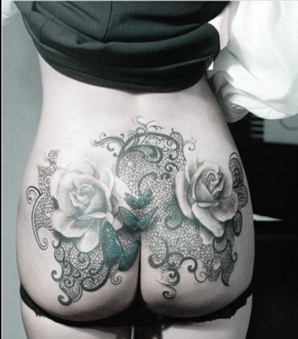 美女重口味蕾丝蝴蝶纹身图片