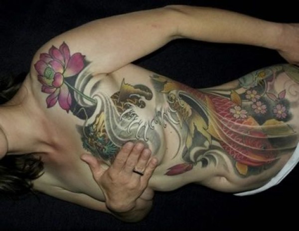 侧躺展示精美的纹身艺术作品图片