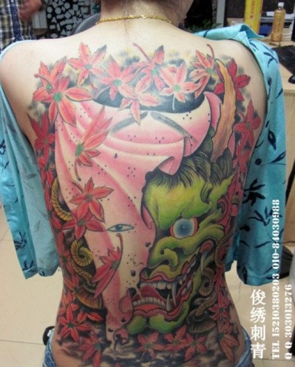 性感女生满背创意文身作品