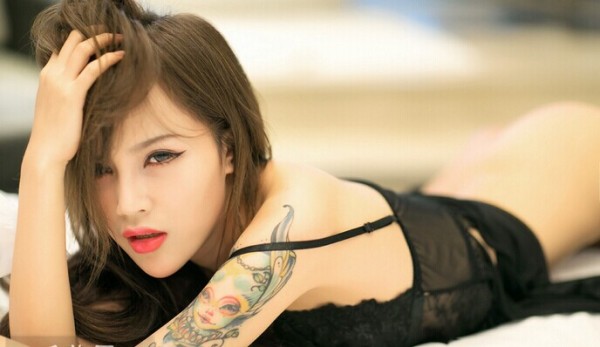 令人心跳媚惑性感美女肩部肖像纹身图片