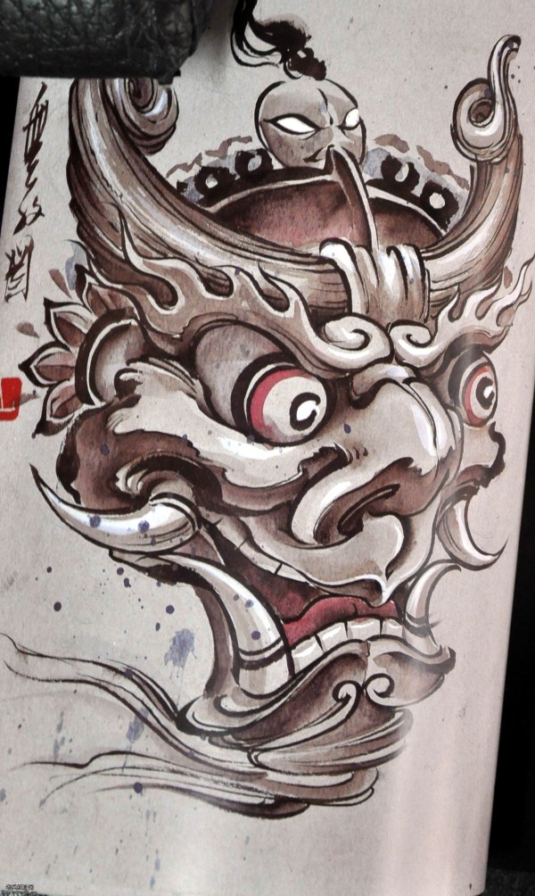 能面万媚纹身手稿_52张日式能剧面具纹身手稿图案素材欣赏