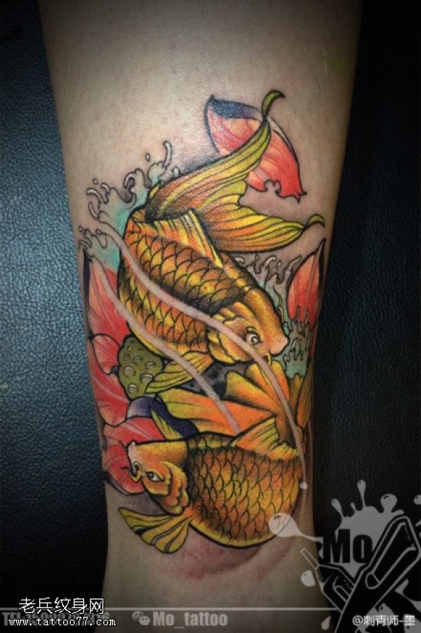 传统鲤鱼花小腿纹身_腿部纹身图案大全_纹身图吧