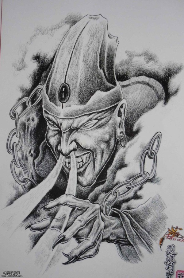 能面万媚纹身手稿_52张日式能剧面具纹身手稿图案素材欣赏