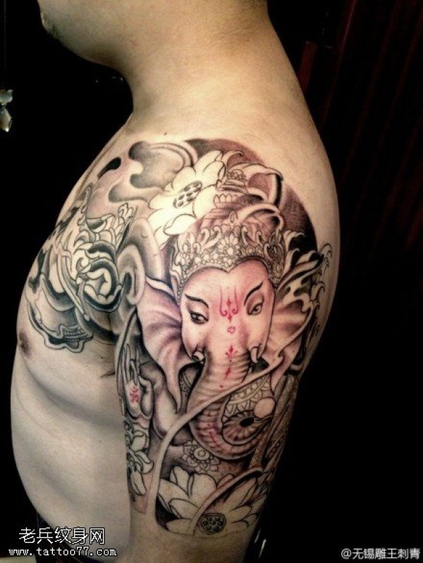 女生肩花纹身_15张女性双肩对称的肩花纹身图案作品图片