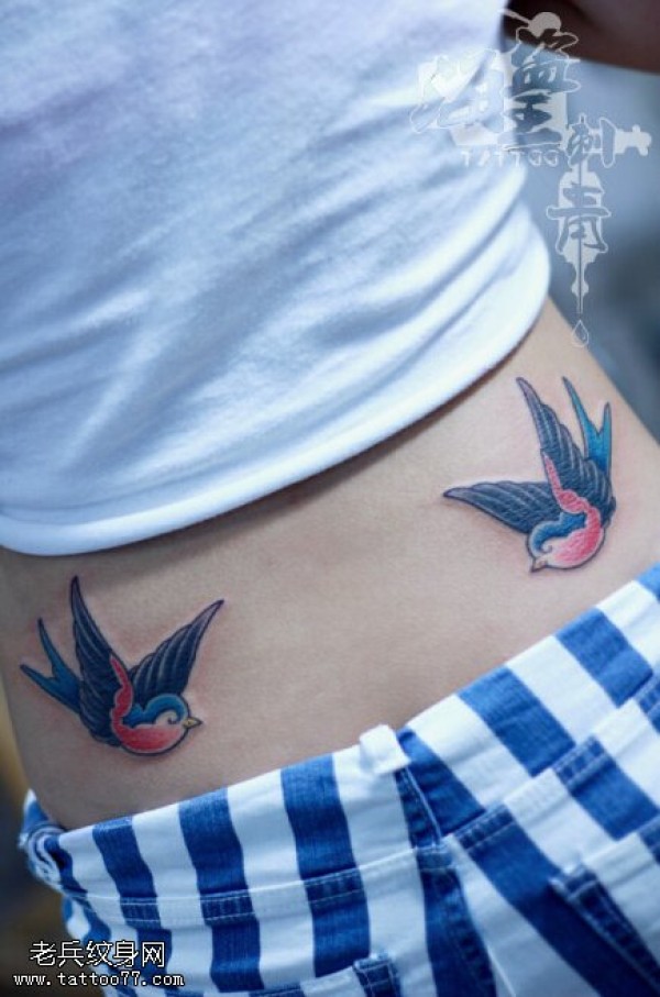 分享一款腰部时尚性感的蝶恋花纹身图案_腰部纹身图案大全_纹身图吧