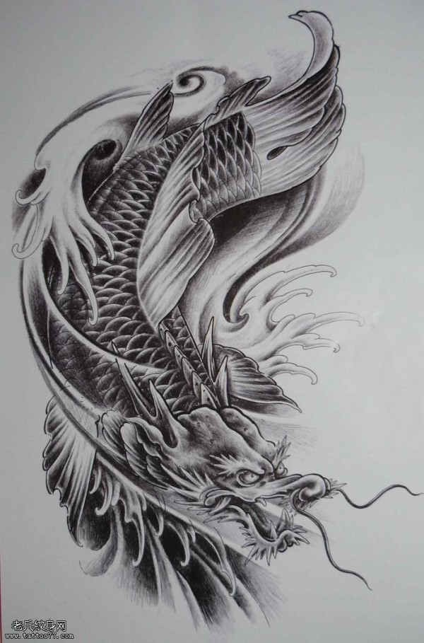 龙纹身手稿_一组老传统黑灰龙手稿纹身图案