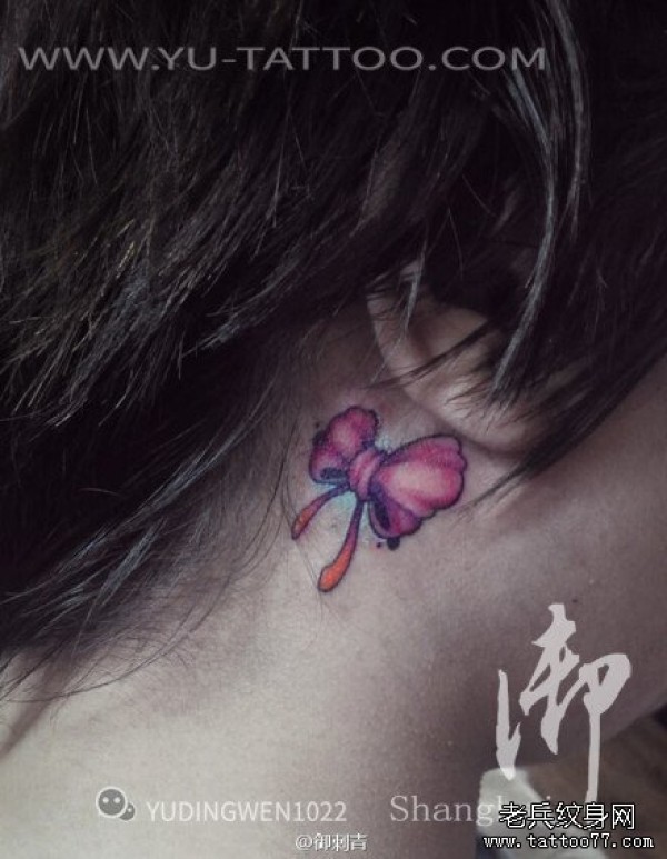 耳后小清新蝴蝶结纹身图片