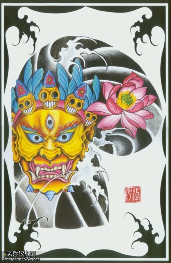 能面万媚纹身手稿_52张日式能剧面具纹身手稿图案素材欣赏