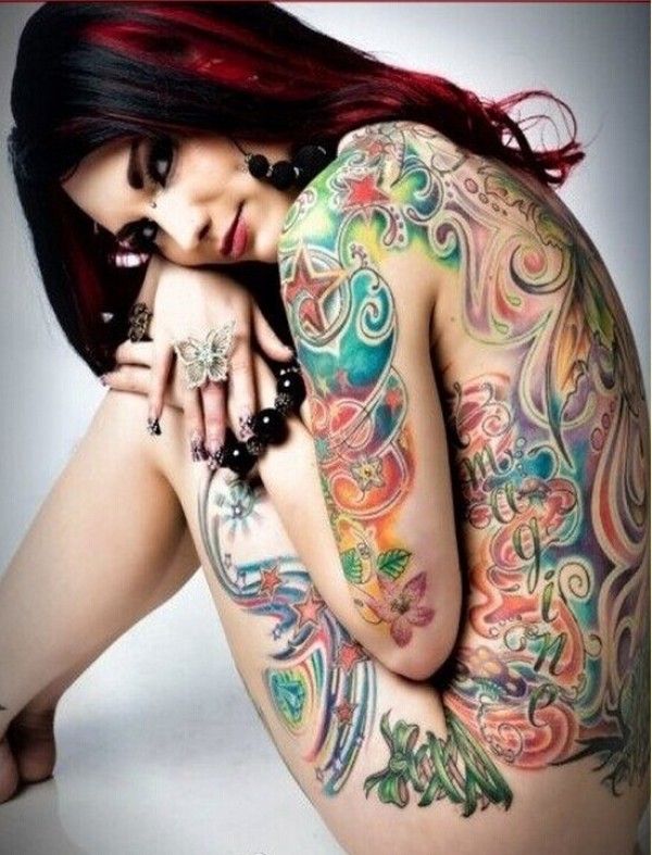 美女彩色满背纹身图案欣赏图片