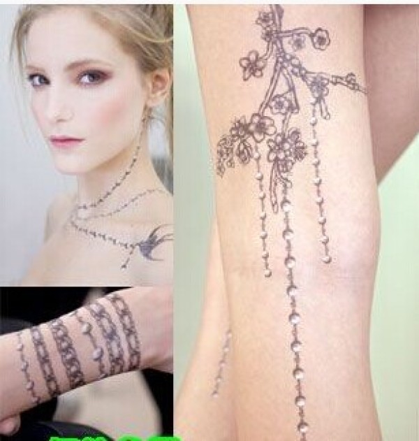 漂亮女生腿部颈部手臂珍珠项链纹身图图片