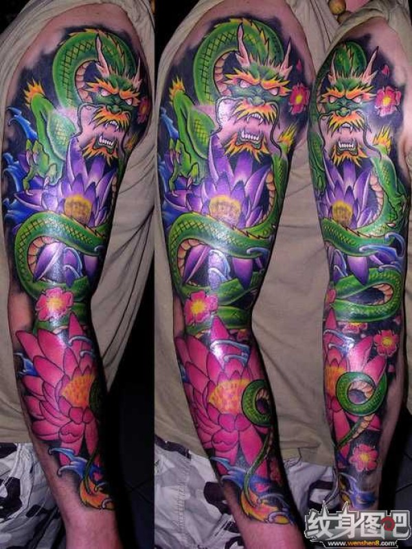 手臂莲花蛇纹身图案_臂部纹身图案大全_纹身图吧