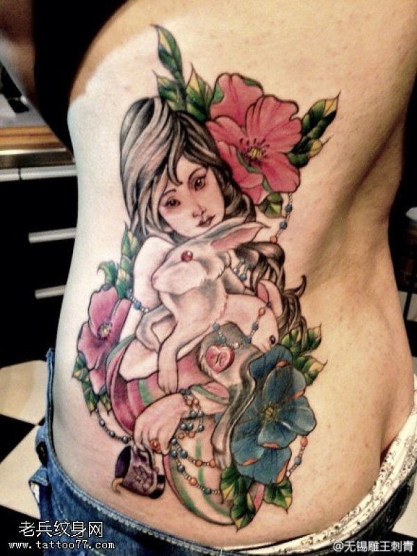 女性腰部莲花花纹刺青_腰部纹身图案大全_纹身图吧