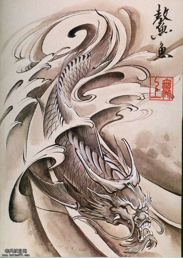 龙纹身手稿_一组老传统黑灰龙手稿纹身图案