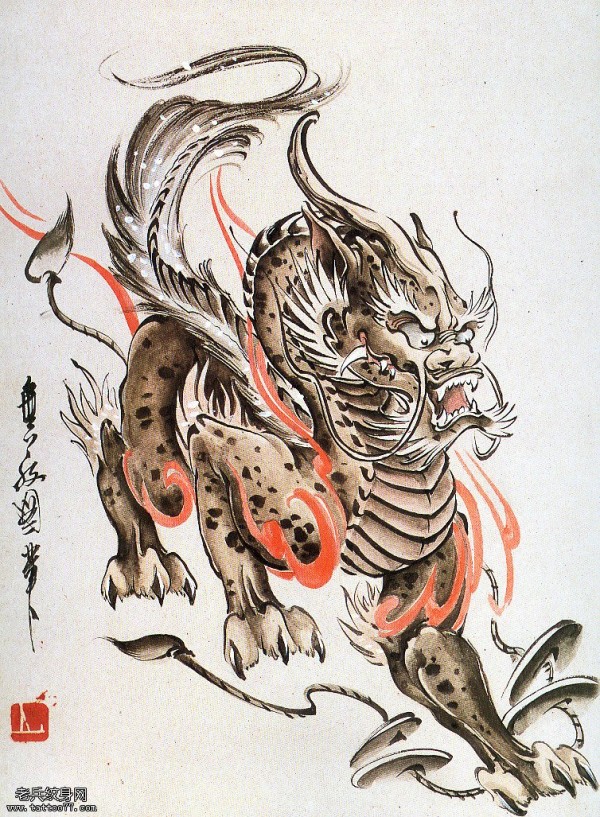 龙纹身手稿_一组老传统黑灰龙手稿纹身图案