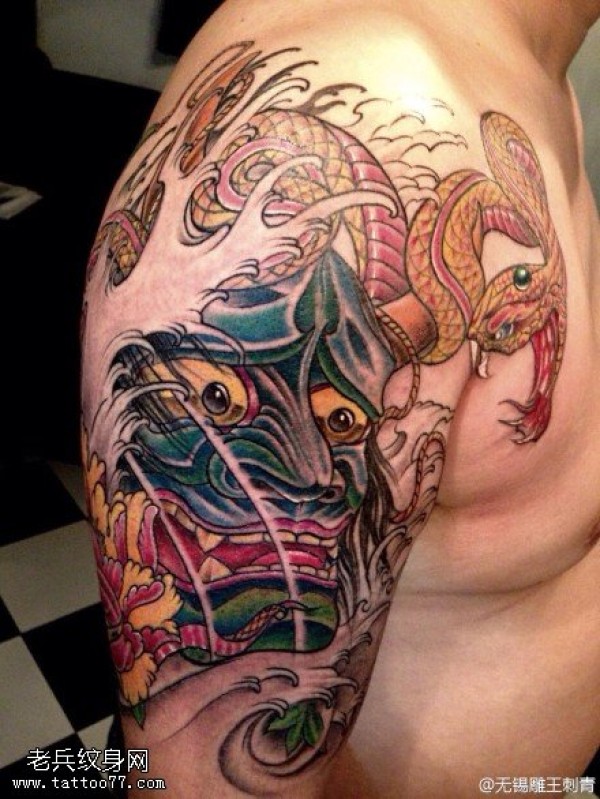 手臂莲花蛇纹身图案_臂部纹身图案大全_纹身图吧