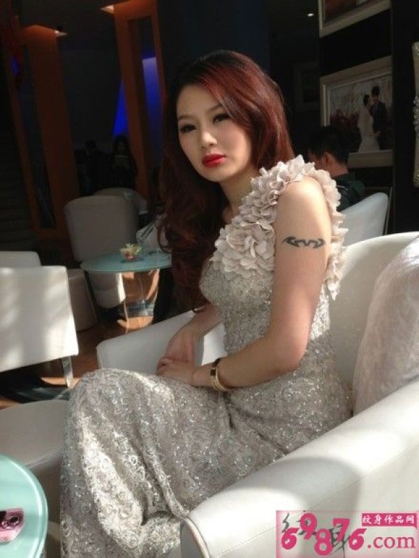 红唇美女手臂时尚图腾纹身图片