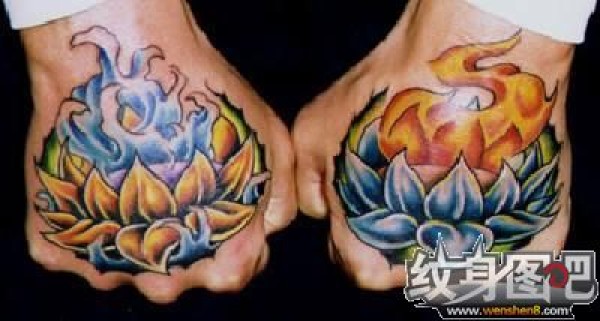 两只手背上两朵莲花纹身图