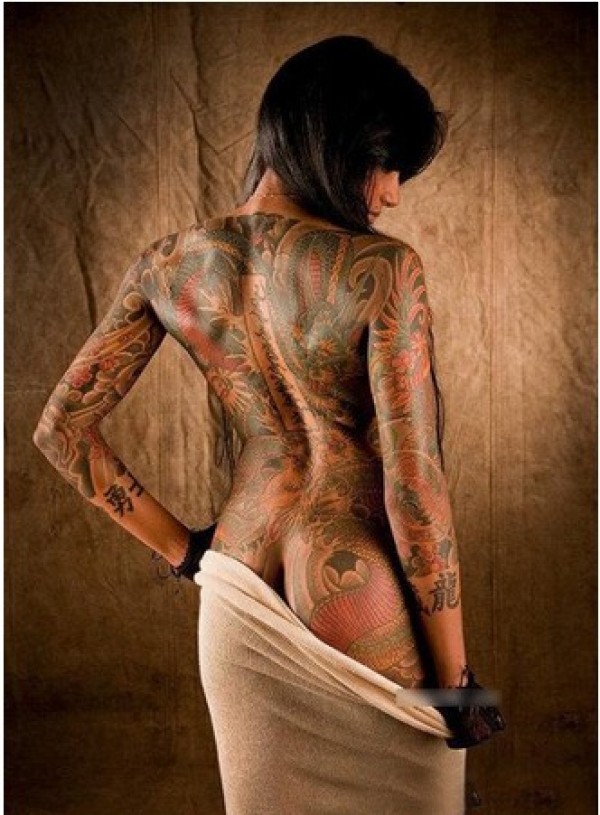 性感女生满背创意文身作品