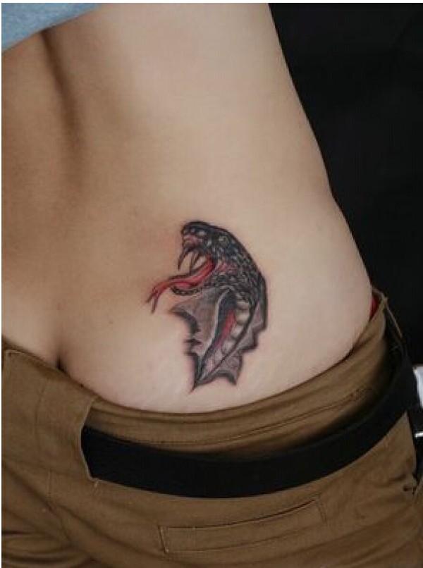 美女腰部个性时尚好看的撕皮蛇纹身图