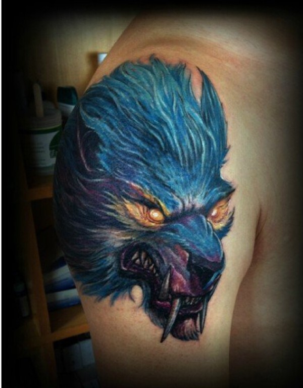 个性时尚手臂超酷凶恶的狼头纹身图案