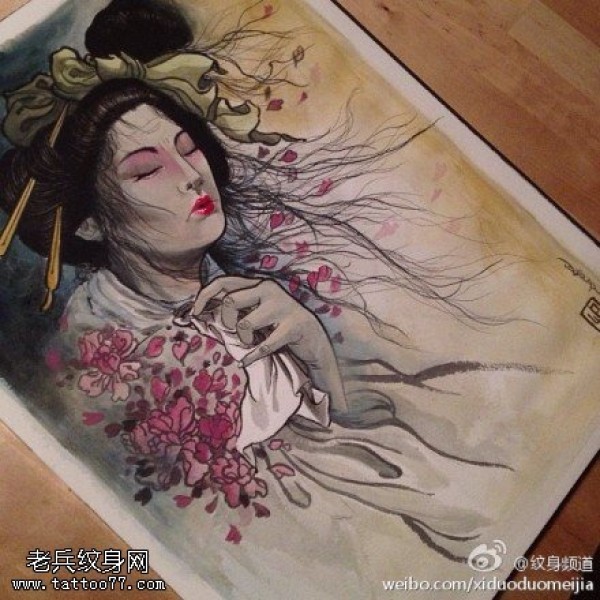 能面万媚纹身手稿_52张日式能剧面具纹身手稿图案素材欣赏