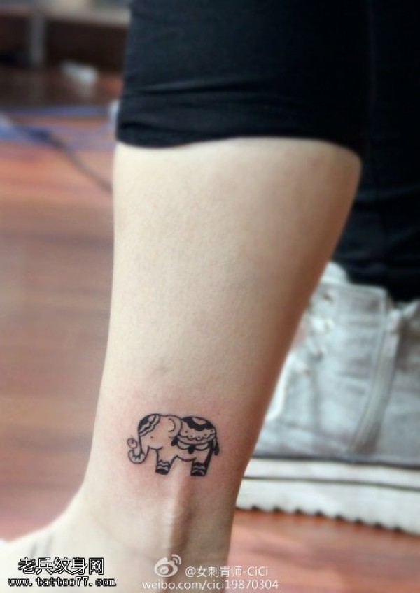脚踝小清新小象纹身图案
