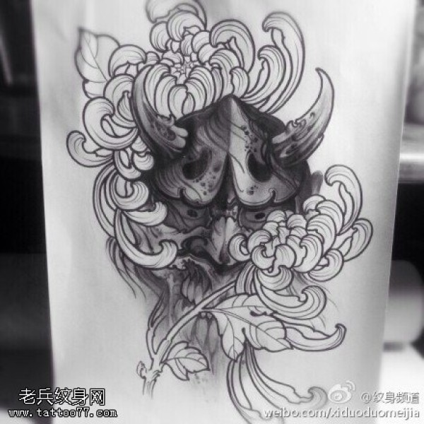 能面万媚纹身手稿_52张日式能剧面具纹身手稿图案素材欣赏