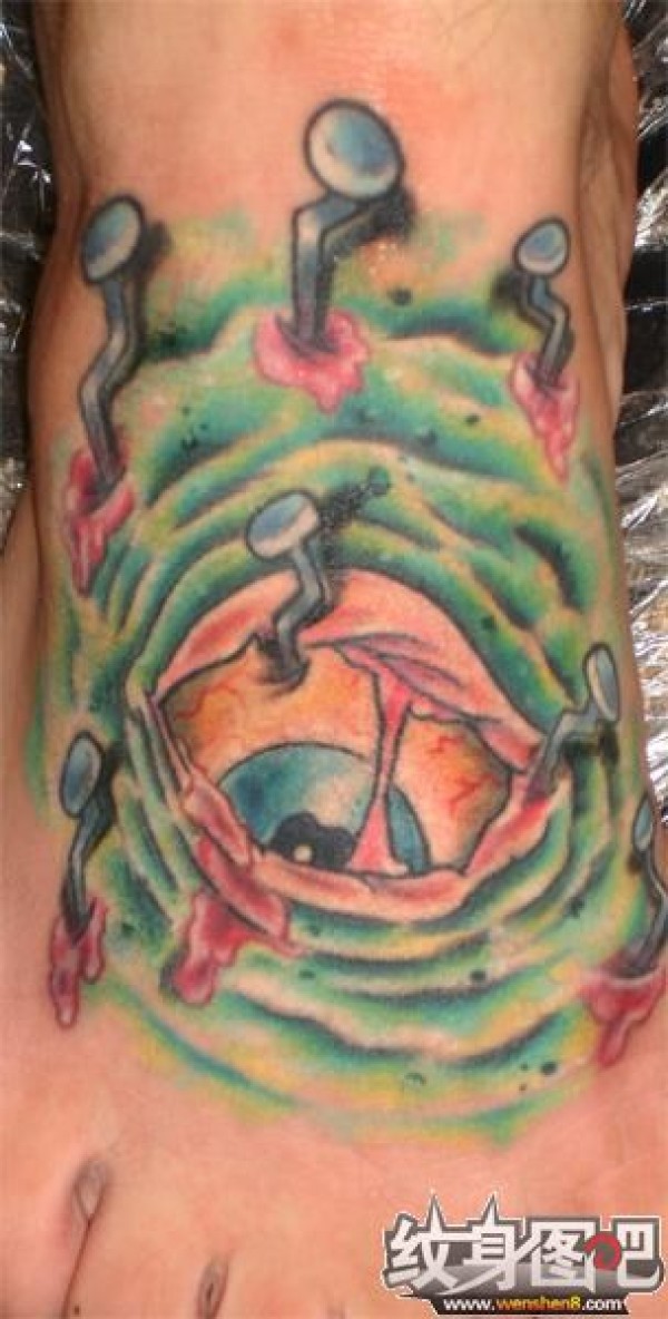 脚背上七颗钉子固定的眼睛