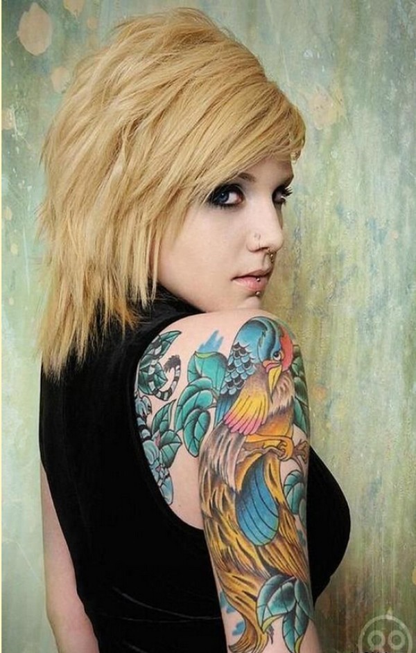 时尚女生手臂好看的彩色鹦鹉纹身作品图片