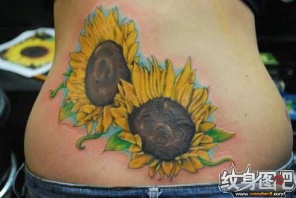 草图感向日葵纹身图案_植物纹身图案大全_纹身图吧