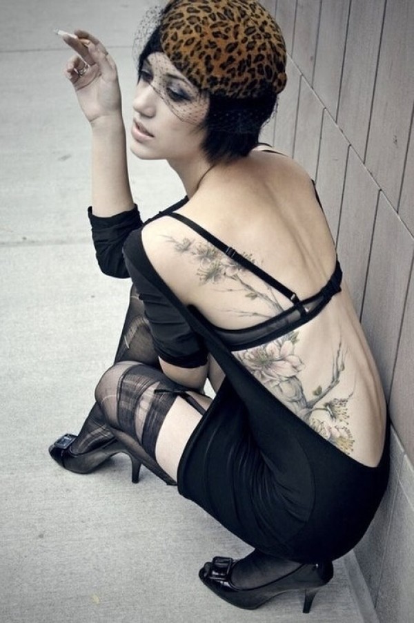 国外漂亮魅力美女后腰背花纹身图片图片